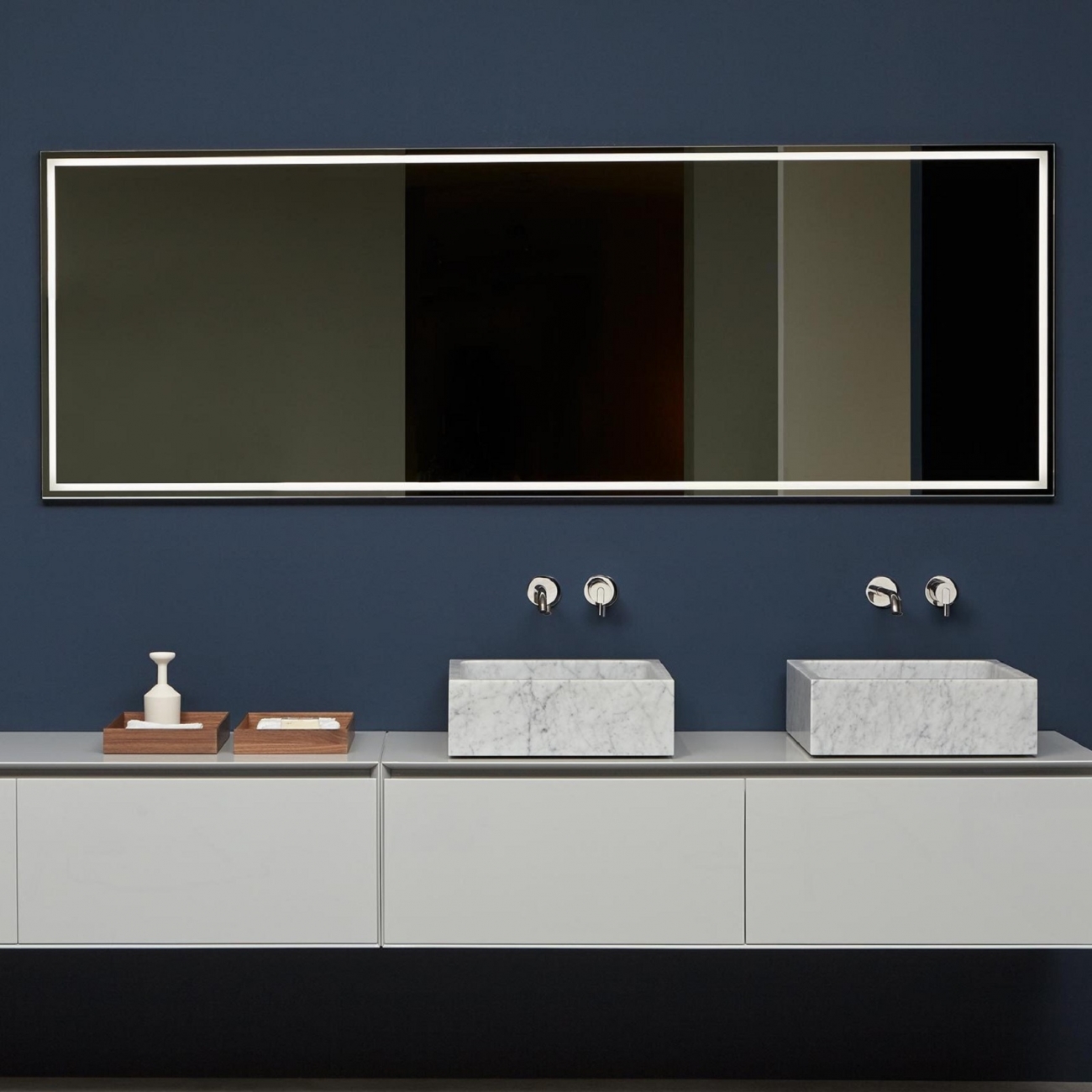 Polished edge mirror mounted horizontally or vertically with white led lighting complete with frame.